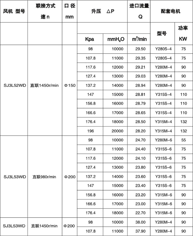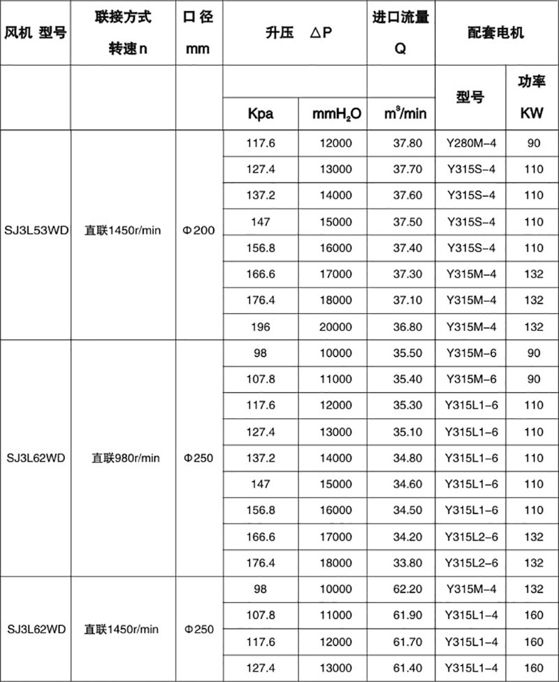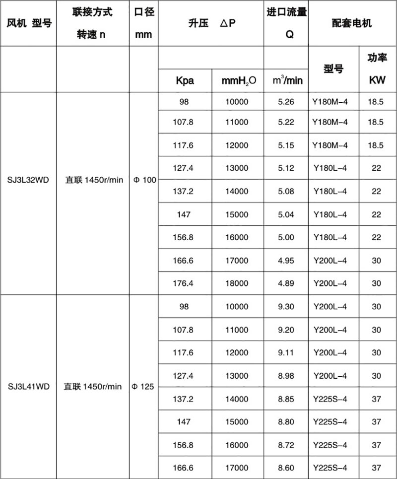 雙級(jí)高壓羅茨風(fēng)機(jī)性能表